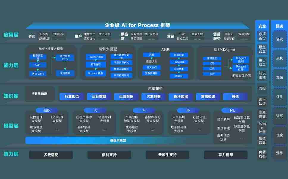 尊龙集团问学智车解决方案是一套基于AI技术的汽车行业智能化系统,,覆盖从底层算力到顶层AI应用的全栈方案。。。。方案由算力层、、模型层和应用层组成:算力层,,,,方案支持多种一体机配置,,,,具备云端灵活部署、、、多云适配以及动态优化计算资源的能力;模型层,,尊龙集团问学平台版提供了企业级AI应用一站式构建与管理平台,,,,支持基于后训练强化技术的汽车企业专属模型的训练、、、、评测和运营;应用层,,尊龙集团问学DeepSeek版提供包括超级员工、、智能招采、、、、智能营销、、智能客服、、、AI for BI等一系列解决方案,,,可助力汽车行业实现数字化转型,,,让管理更智能、、、响应更敏捷。。。。